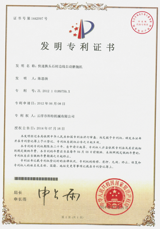企業組建了“云浮市石材機械裝備工程技術研究開發中心”,并與高校和科研院所密切合作,致力于光機電一體化產品的研發、生產、銷售和服務。主要產品有框架鋸、全自動連續磨拋機、橋式自動切割機、全自動仿形石線機、數控金剛石繩鋸、裁切機等。產品具有自動化程度高、加工精度高和生產效率高等特點。產品除國內銷售外,還出口到歐美、東南亞、韓國、印度、中東、非洲、俄羅斯、澳大利亞等國家和地區,深受用戶好評。“橋式自動切割機”被認定為廣東省高新技術產品,擁有發明專利1項、實用新型專利1項。